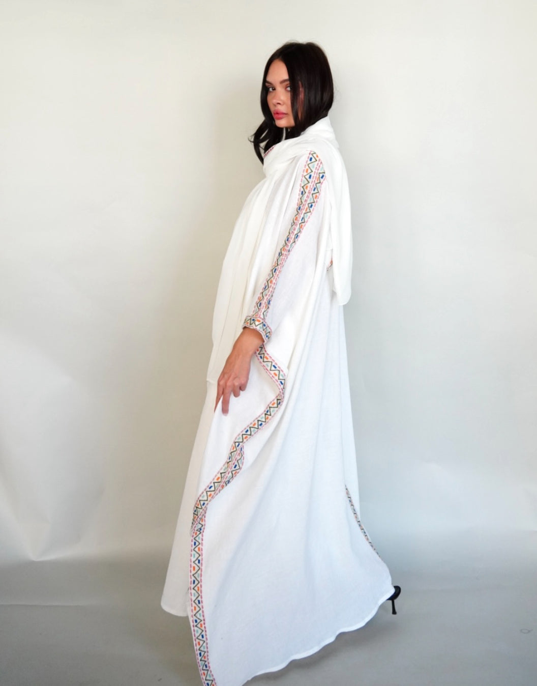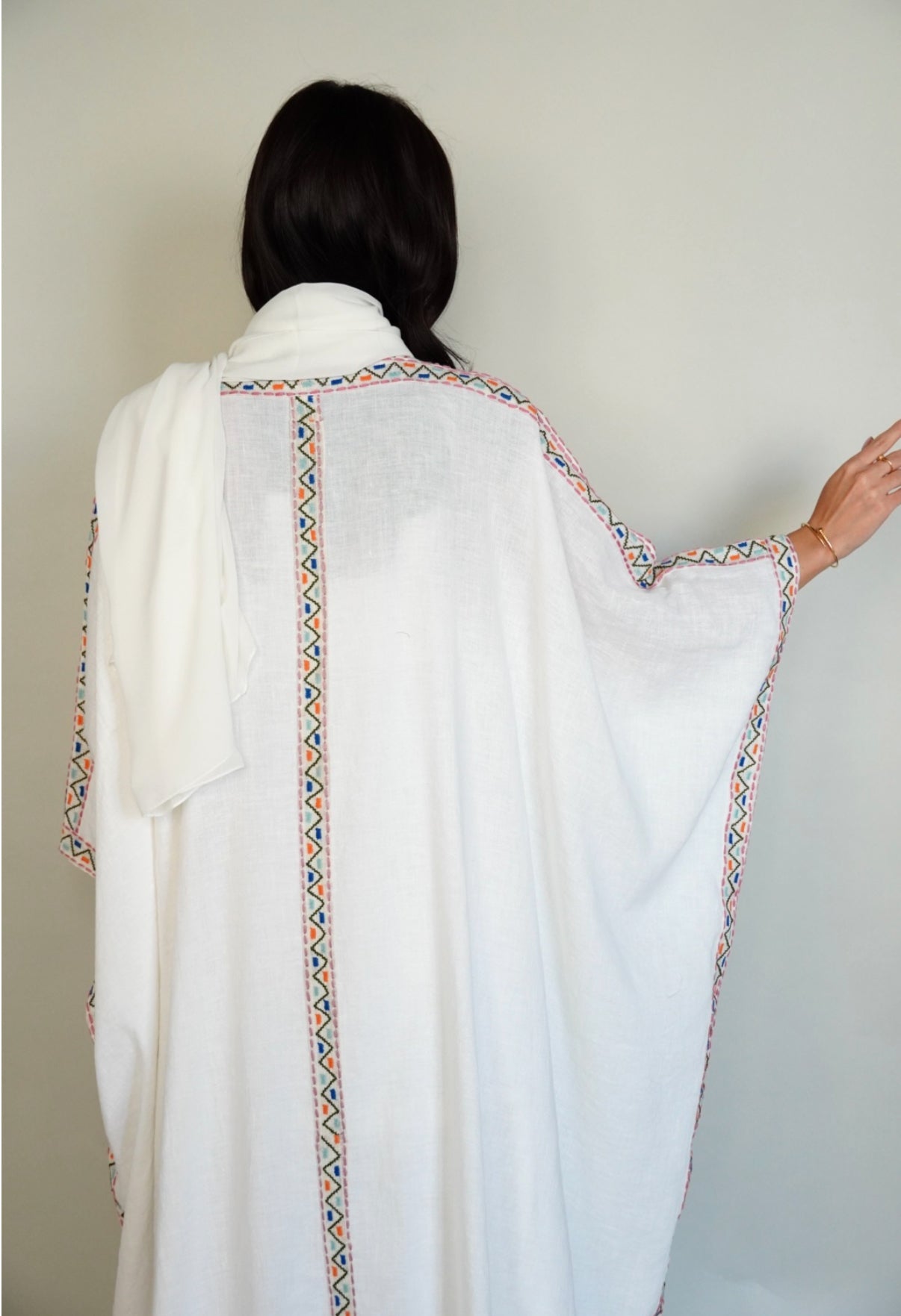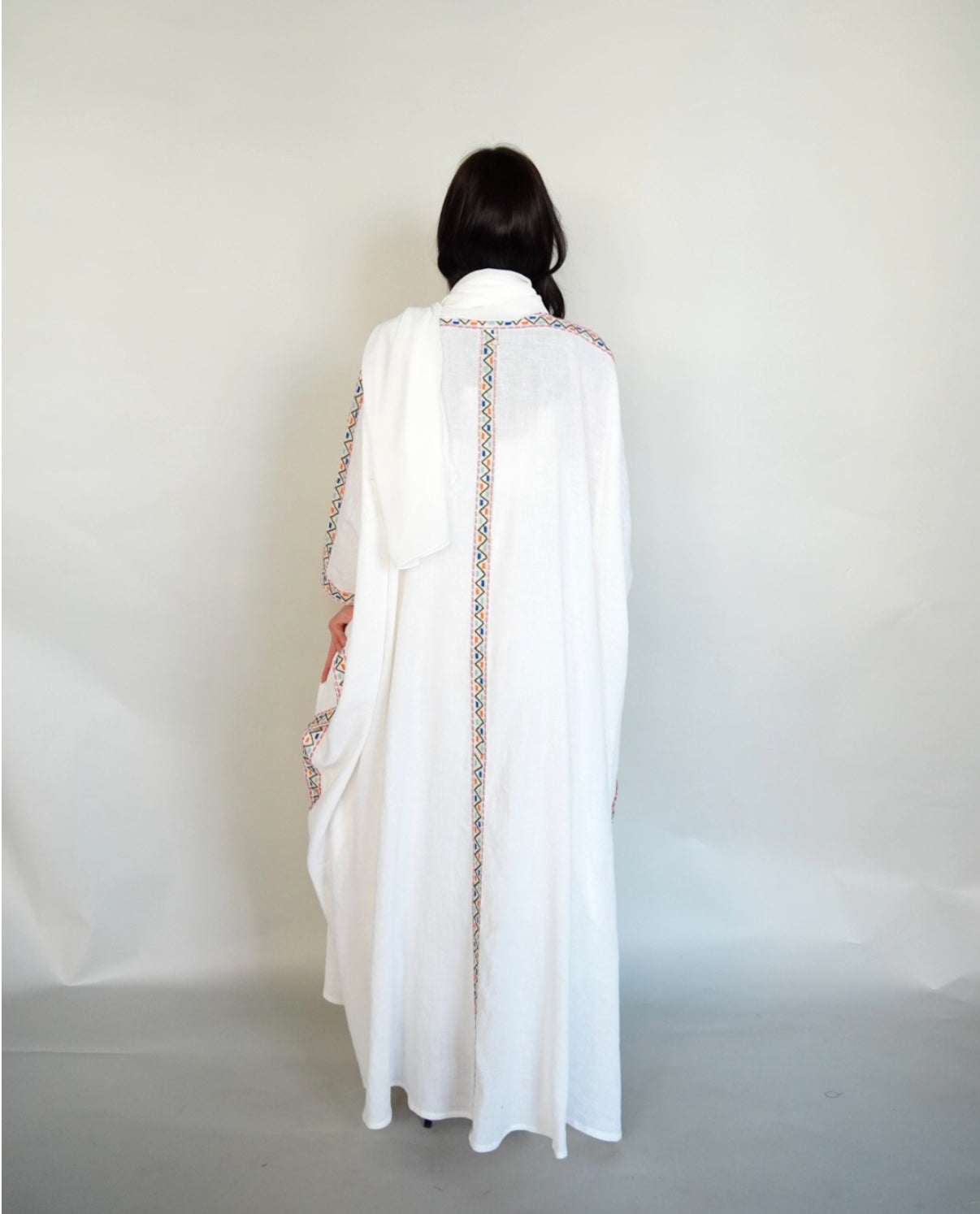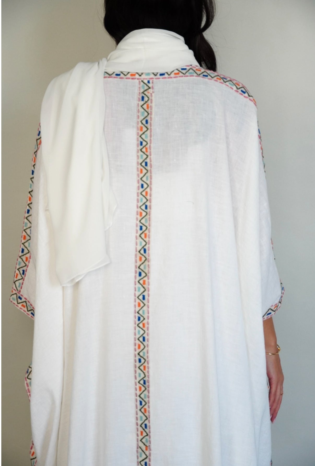 White linen bisht abaya.