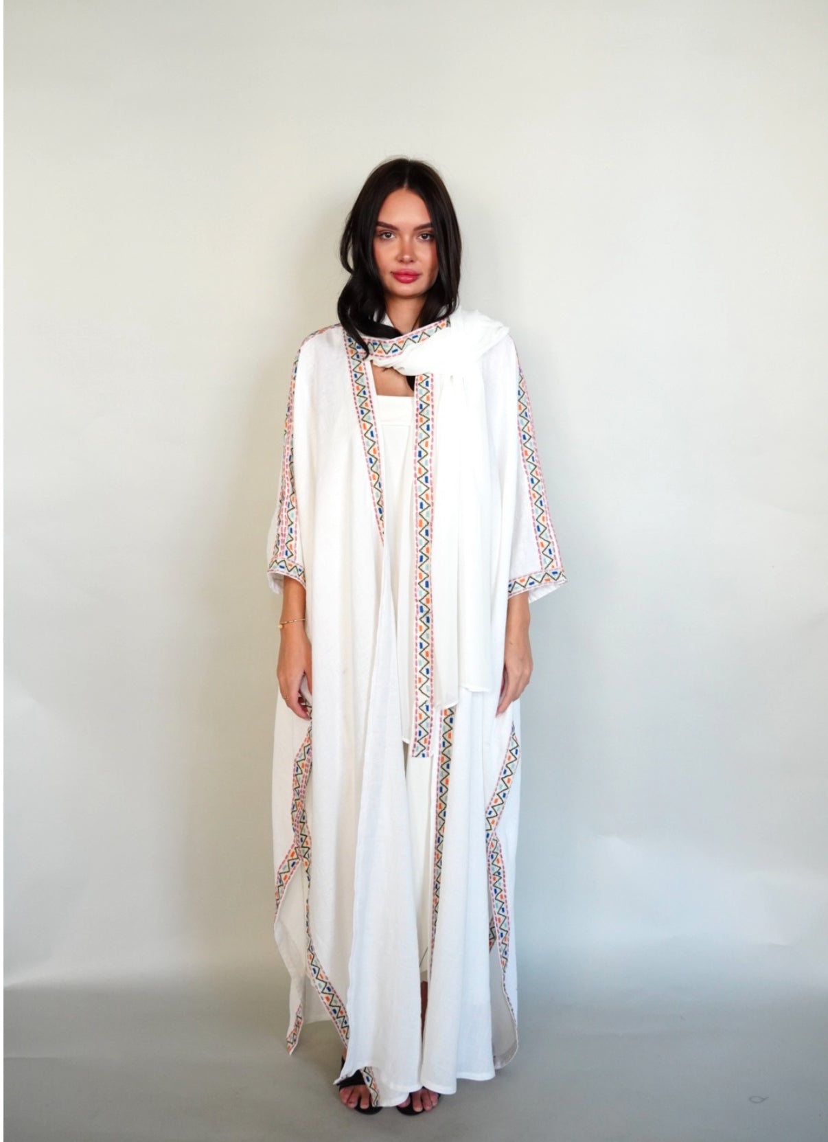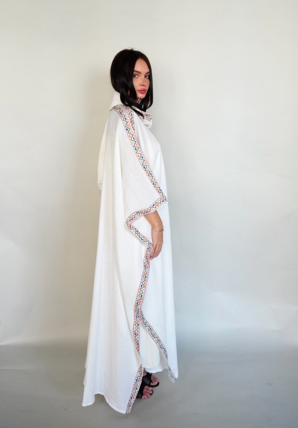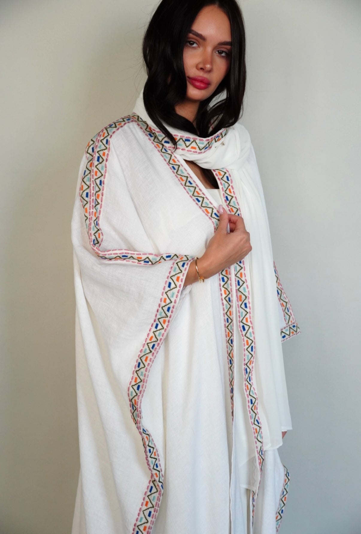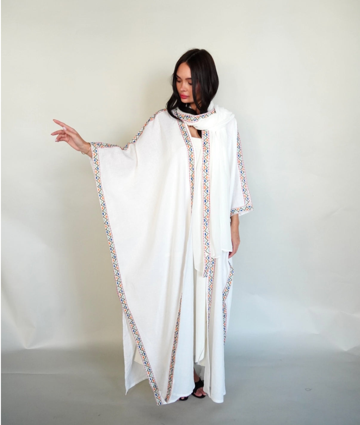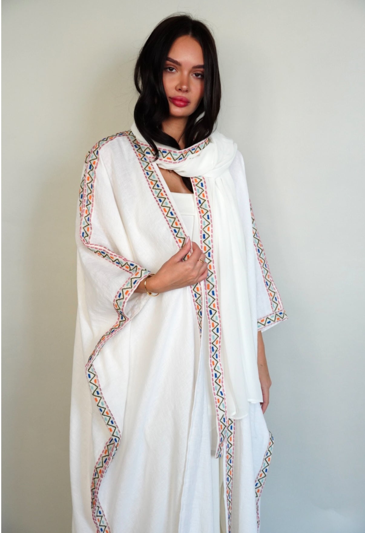 White linen bisht abaya.