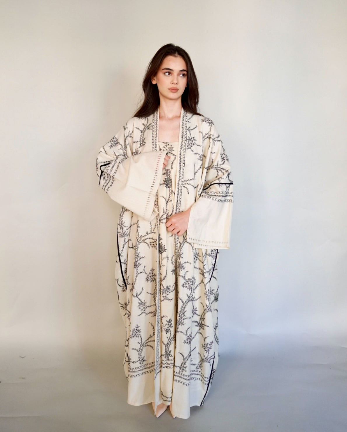 - Embroidered cashmere abaya.