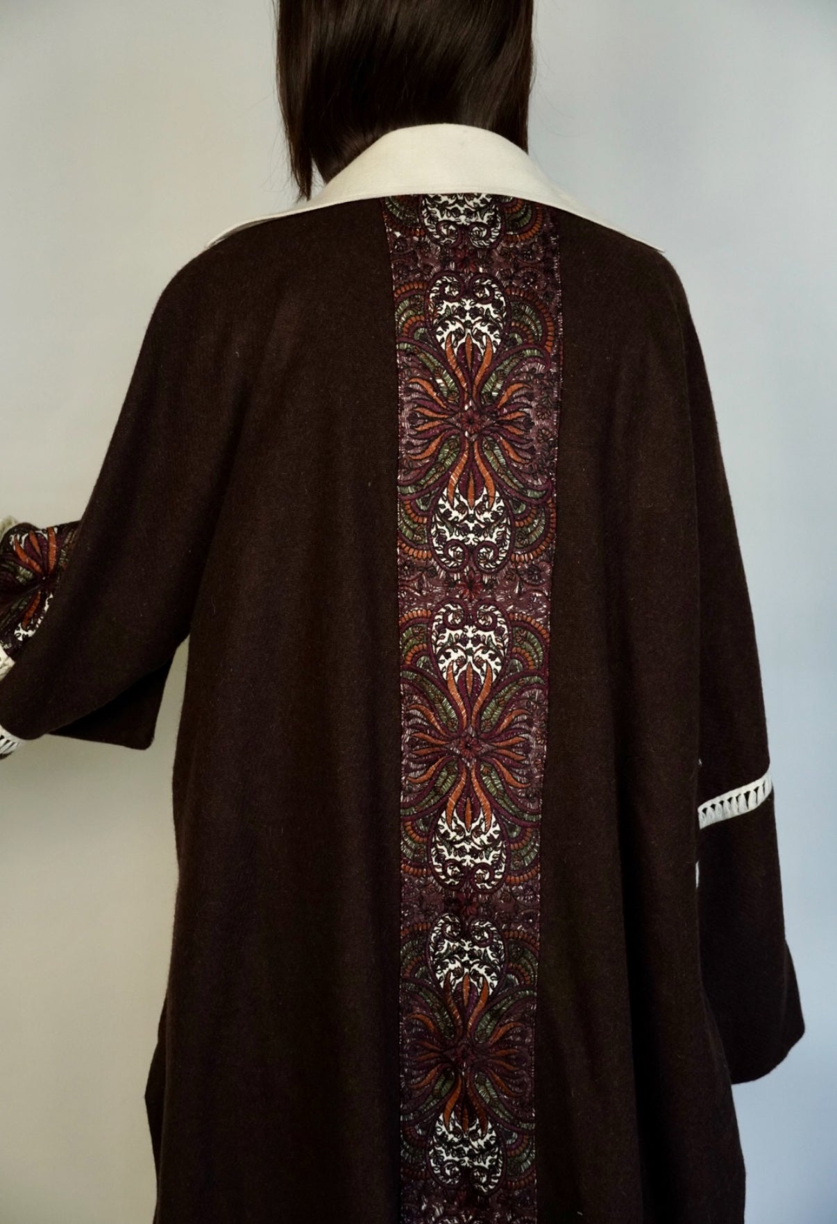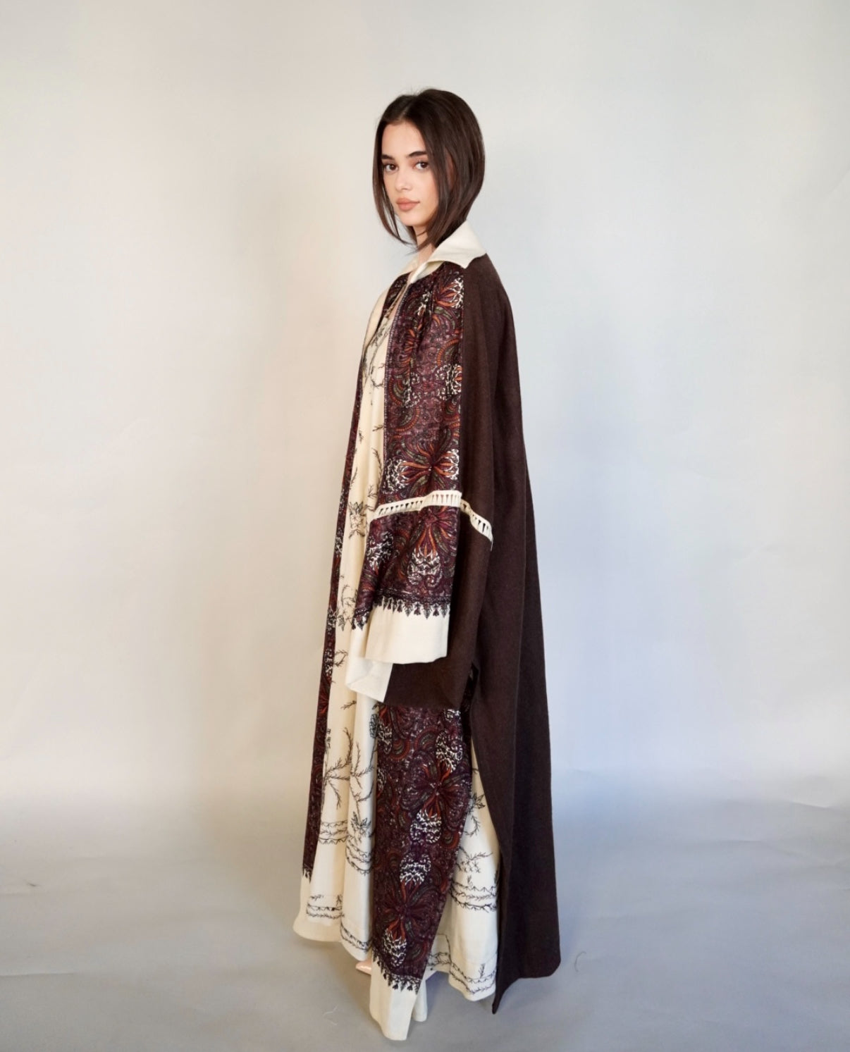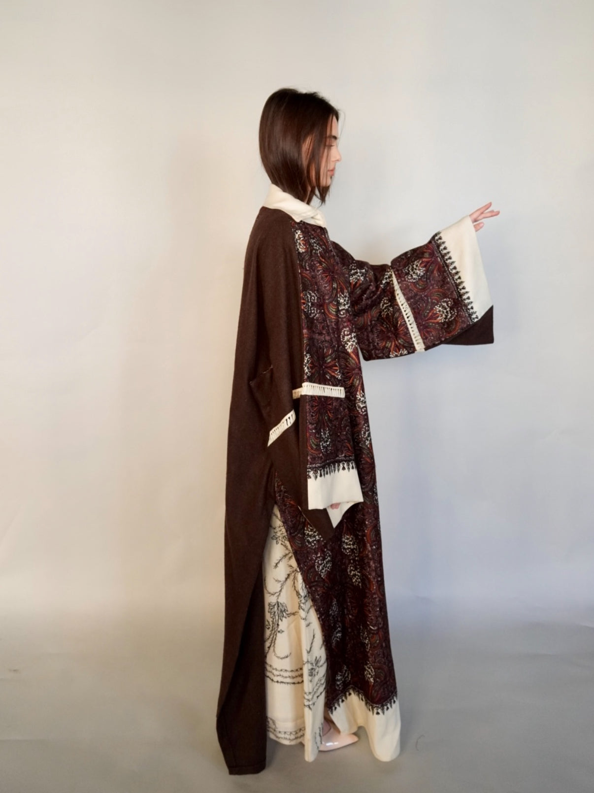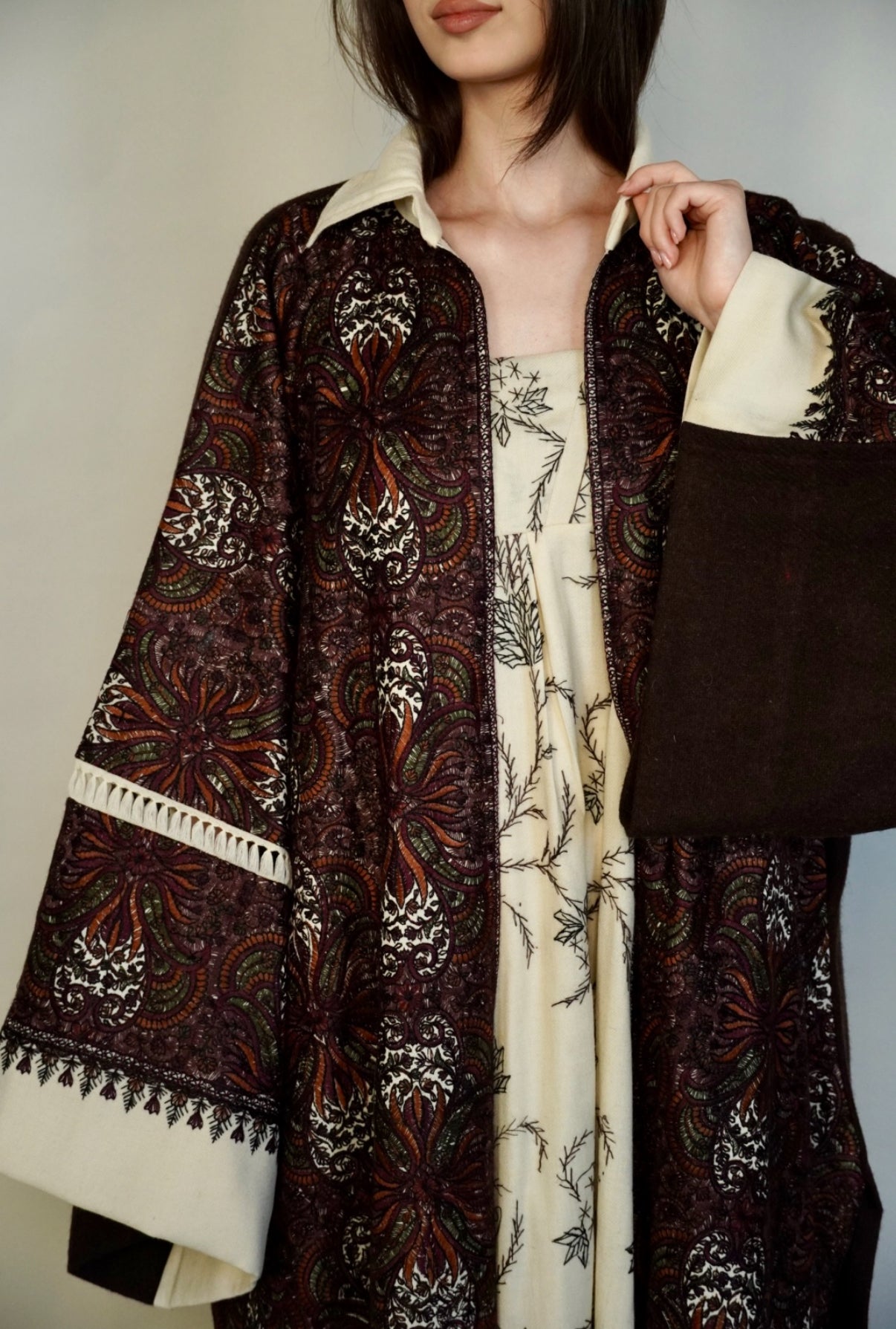 - Maroon randomly embroidered cashmere wool abaya.